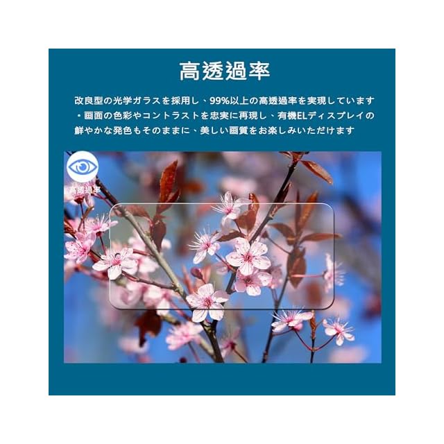 【高透過率】:改良型の光学ガラスを採用し、99%以上の高透過率を実現しています。画面の色彩やコントラストを忠実に再現し、有機ELディスプレイの鮮やかな発色もそのままに、美しい画質をお楽しみいただけます。裸眼と変わらない高い視認性を確保し、ゲームや動画視聴でも没入感のある体験が可能です