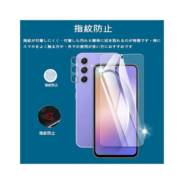 【 指紋防止】:指紋が付着しにくく、付着した汚れも簡単に拭き取れるのが特徴です。特にスマホをよく触る方や、外での使用が多い方におすすめです。