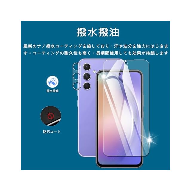 【超お得な4枚セット!】:Galaxy A54 5G 用の フィルム 2枚+Galaxy A54 5G 用の カメラフィルム 2枚+ガイド枠付き。別途ご購入いただく必要はなく、画面からレンズまで一括で保護できます