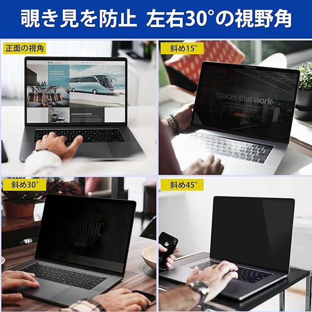 ✅ [プライバシー保護] 視野角は60度で、正面からだと画面はクリアに見えますが、隣の席からは真っ暗に見える偏光性を持った「覗き見防止フィルター」です。
