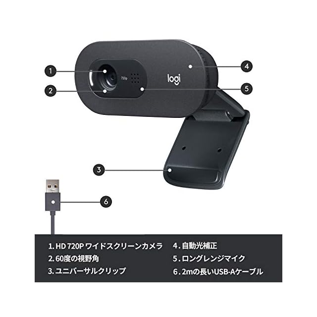 ロジクール Webカメラ C505 HD 720P 自動光補正 ロングレンジマイク 2mの長いUSB接続ケーブル Zoom や Skype 等主要なビデオ通話アプリに対応 ブラック ウェブカメラ ウェブカム PC Mac ノートパソコン 国内正規品 2年間無償 | つむぎ屋