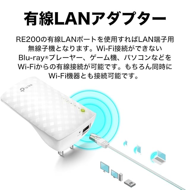 TP-Link WiFi 無線LAN 中継器 11ac AC750 433+300Mbps 11ac対応 デュアルバンド OneMesh 対応 iphone13, Android 対応 メーカー3年 RE200 | つむぎ屋
