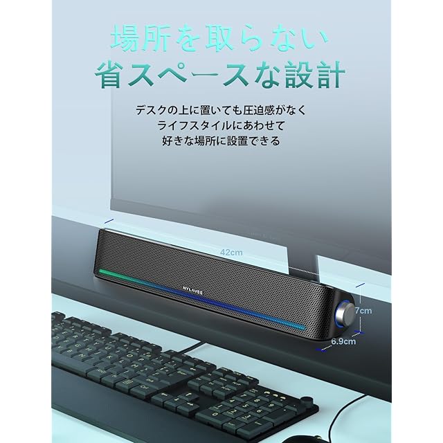 【メリット】最適化設計と贅沢なスピーカーユニット構成により、豊かな低音からクリアな高音までを再生することできます。ベッドルームに最適なコンピューターサウンドバーです。