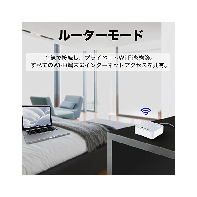 [マルチモード機能搭載] ボタンひとつで変化する5つのモード(ルータ/ホットスポット/中継/クライアント/AP(ブリッジ))に対応。環境に合わせて最適なモードへ様変わり。