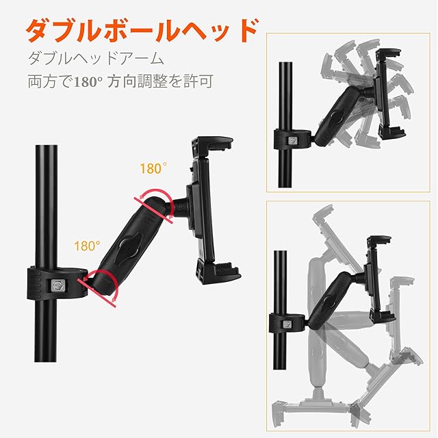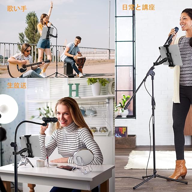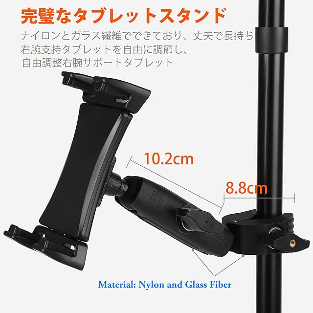 【音楽に特化した設計】-このiPadスタンドはマイク音楽スタンドのために設計されており、曲の歌詞やコードを表示したり、バックグラウンドの曲をトリガしたり、音楽ビデオ番組の録画を容易にしたりするために、マイクスタンド、ハンガー、音楽スタンド、シンバルスタンドとしてポールに挟んだりするだけで、任意の視点に簡単にiPadを調整できます。合唱団の授業、結婚式、コンサート、パーティー、会議で音楽を再生し、共有するなど、多くの場面で使用されています。最大荷重:1.0 kg/2.2 lb