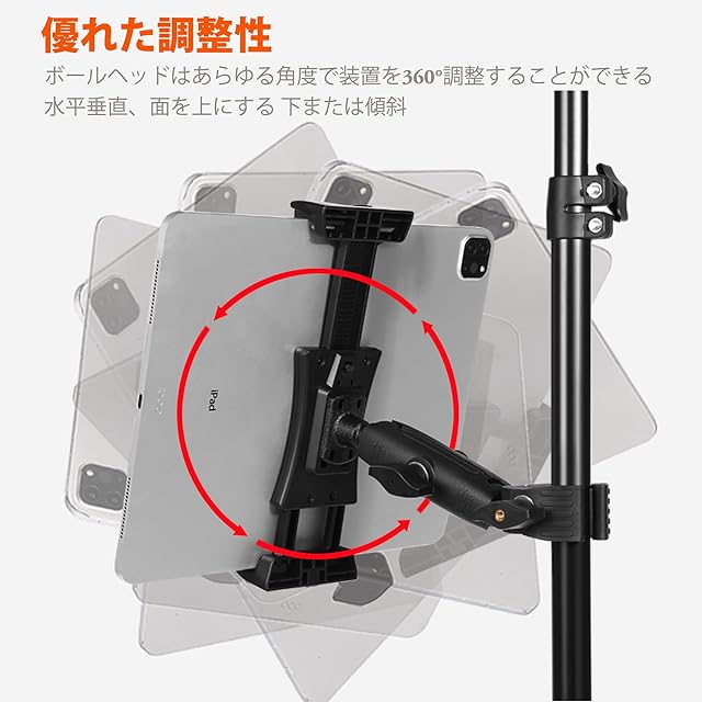 商品名:Peastrex Ipadスタンド、マイクスタンド、タブレット端末用スタンド、マイク音楽スタンドスタンド、回転調節可能、スーパーハンドルホルダー付き、Ipad Pro 12.9 Air Mini、Android、4~13.5インチiPhone、タブレット