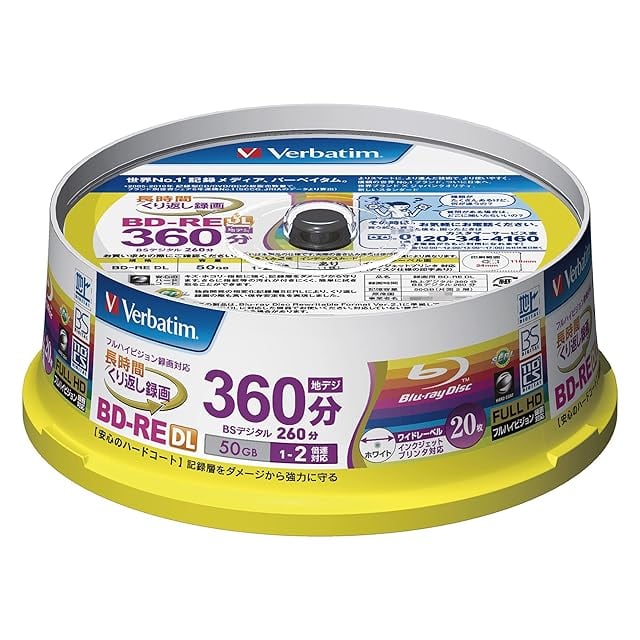 商品名:バーベイタムジャパン(Verbatim Japan) くり返し録画用 ブルーレイディスク BD-RE DL 50GB 20枚 ホワイトプリンタブル 片面2層 1-2倍速 VBE260NP20SV1