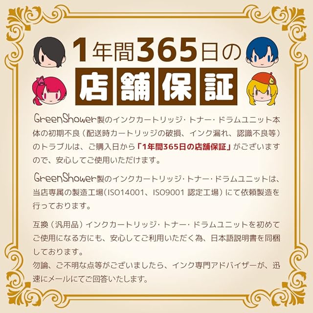 ■安心の日本法人インク販売店■ オンラインマニュアルを採用、商品パッケージのQRコードから読み取りいただけます。当店の互換インクカートリッジを初めてお使いの方にも安心専門のアドバイザースタッフを配置。(互換トナー・互換インク・リサイクル等販売歴5年以上のスタッフ)お客様を全力サポート致します。