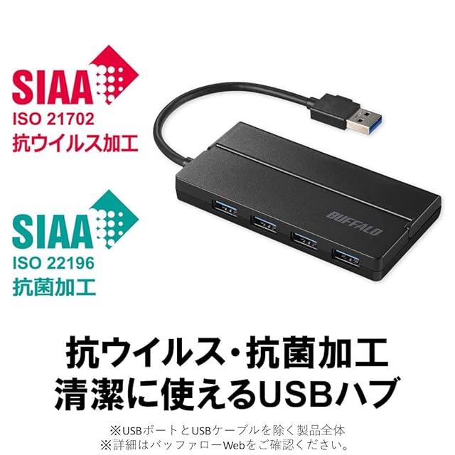 商品名:バッファロー USB3.0 バス 4ポート ケーブル収納 抗菌・抗ウイルス ブラック BSH4U135U3VBBK