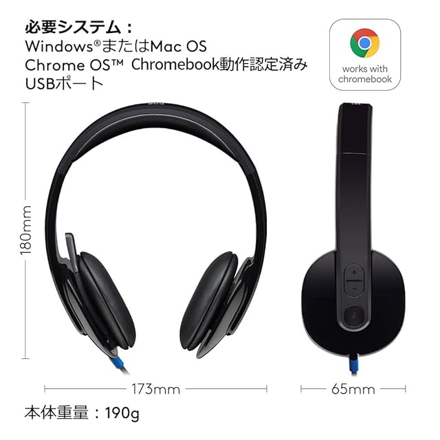 システム要件 Windows、macOS、またはChrome OSおよび一般的な通話プラットフォーム。 「Works With Chromebook」認定。 USBポート