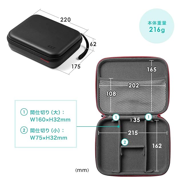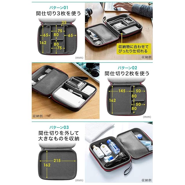 商品名:サンワダイレクト トラベルポーチ ガジェットポーチ セミハード 仕切り付 旅行 出張 便利グッズ マウス ケーブル モバイルバッテリー 収納ポーチ Mサイズ ブラック 200-BAGIN015BK