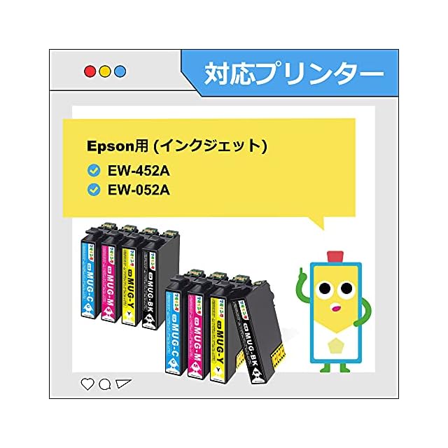 商品名:マタインク MUG-4CL マグカップ インク エプソン用 インク マグカップ Epson用 MUG 大容量タイプ MUG-4CL (MUG-BK MUG-C MUG-M MUG-Y)*2 合計8本セット 対応機種:EW-452A EW-052A 452A 052A インク