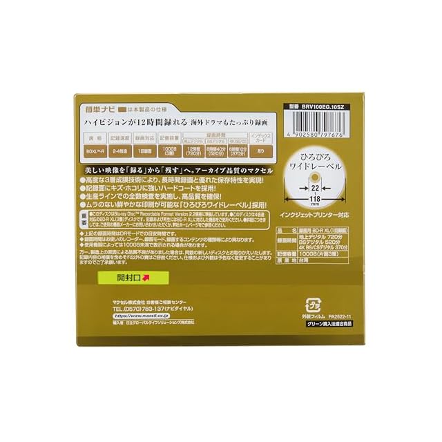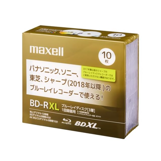 マクセル(maxell) ブルーレイディスク 録画用BD-R XL 10枚入 1回録画 100GB/2~4倍速 ハイビジョン 地上デジタル720分/BSデジタル 520分/ 4K BS・CSデジタル 370分録画可能 ワイドレーベル 書楽インデックス付 BD-R XL イージーセレクトシリーズ BRV100EG.10SZ | つむぎ屋