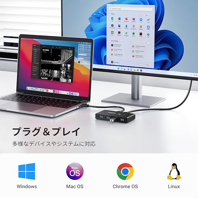 対応OS:Windows 10/8/7/XP/Vista 32/ 64-bit Mac X Linux。活線挿抜(ホットスワップ/Hot swap)機能搭載、ドライバー不要で使用機器を接続すると、即座に認識し使用可能です。ボタン一つで簡単に切り替えることができます。