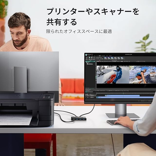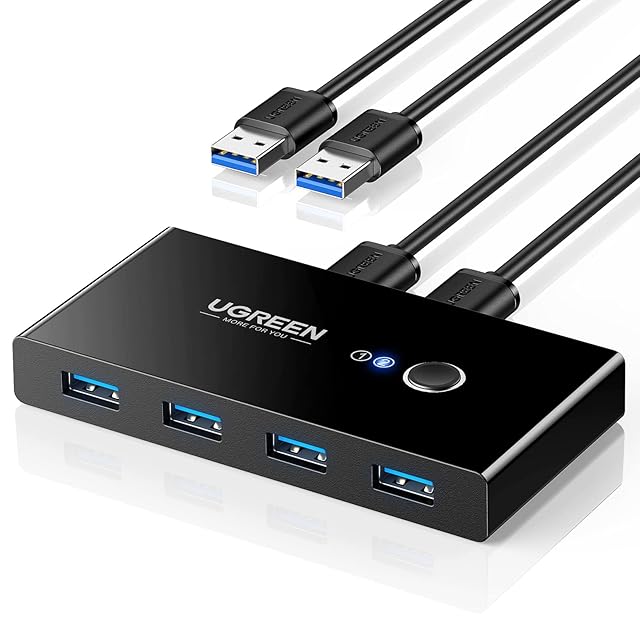 商品名:UGREEN 切替器 3.0 高速転送 USB 切り替え PC2台用 プリンタ マウス キーボード ハブなどを切替 手動切替器 プリンタ 切り替え機 USBケーブル×2 1.5m (附属品) (パソコン2:USB機器4)