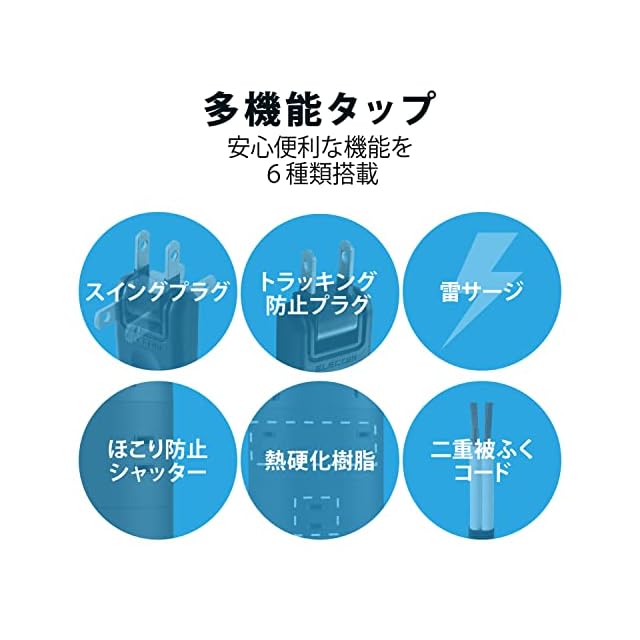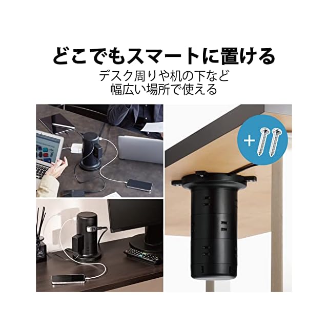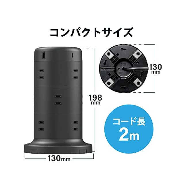 商品名:エレコム 電源タップ タワー型 延長コード [ 12個口 & USB-C×2ポート USB×3ポート ] USB PD 45W 固定パーツ付 雷ガード ほこりシャッター 2m ブラック ECT-2220BK