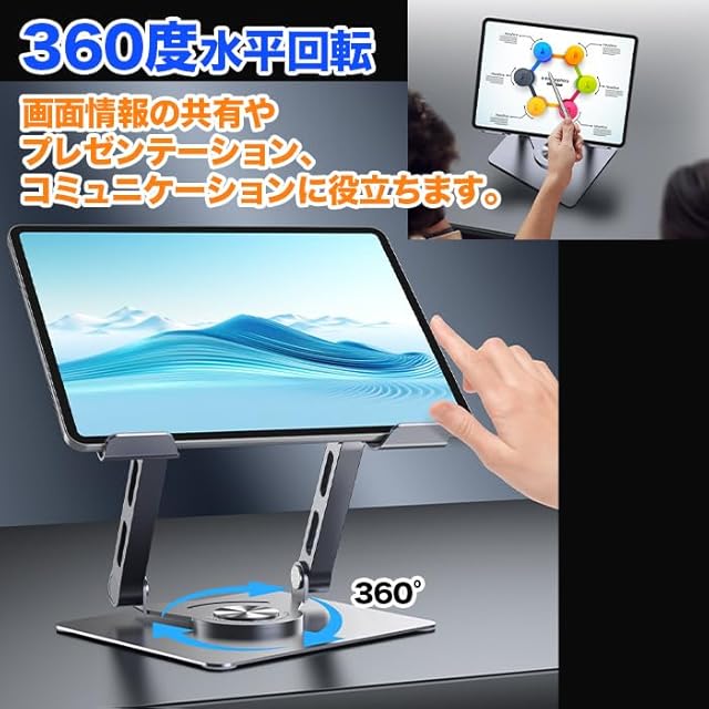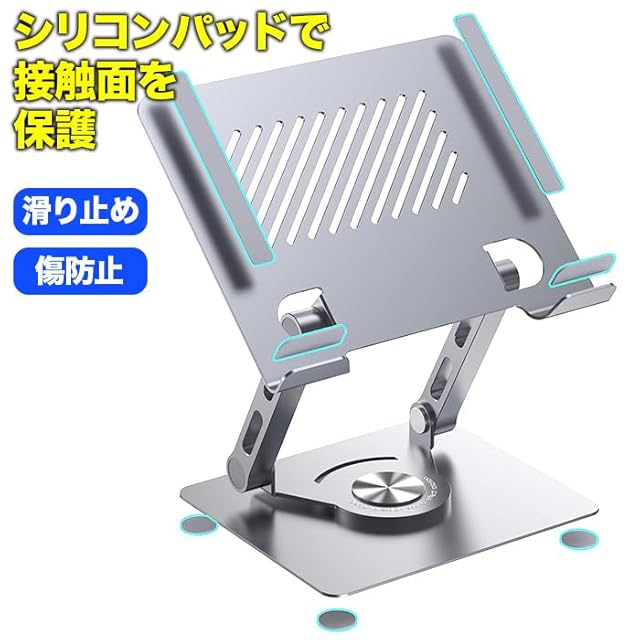タブレットスタンド 水平回転式360° PS-06 スタンド Pasoul 高さ/角度調整可能 姿勢改善 腰痛/猫背解消 折りたたみ式 スマートフォンスタンド 滑り止め ナノスチール製 4~12.9インチ対応 シルバー | つむぎ屋