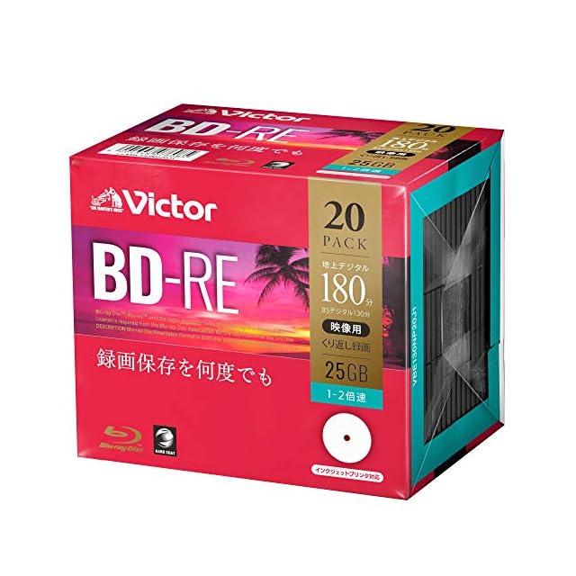 商品名:ビクター Victor くり返し録画用 ブルーレイディスク BD-RE 25GB 20枚 ホワイトプリンタブル 片面1層 1-2倍速 VBE130NP20J1