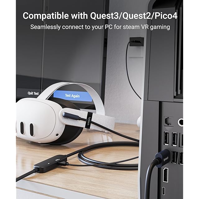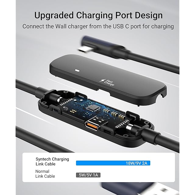 2024年のアップグレード充電:SyntechのVRリンクケーブルと他のケーブルの最大の違いは、18W充電用の別の充電ポートを持っていることです。他のケーブルや公式リンクケーブルは、ゲームプレイ中に電力を切られることがあります。特に、私たちは2024年に公式のQuest3 18W充電器とのチップ互換性をさらにアップグレードし、Quest3S/3/2に一貫性と信頼性の高い電力供給を提供します。SyntechのプロフェッショナルなパフォーマンスでVR体験を高めましょう。