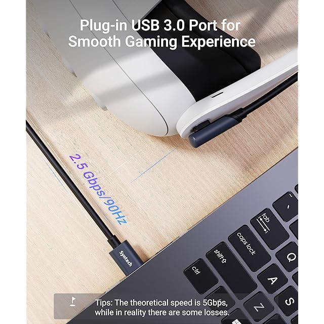 最適なリンクパフォーマンス:Syntechの充電ケーブルはプラグアンドプレイであり、特定の手順を要しません。加えて、USB 3.0/2.5 Gbpsの転送速度をサポートしており、素晴らしいゲーミング体験を提供します。調整可能なベロクロストラップでケーブルをQuest3S/3/2に固定し、動いている時の切断を防ぎます。(注記:コンピューター接続の場合は、ケーブルをUSB A 3.1/3.0ポートに挿入してください)