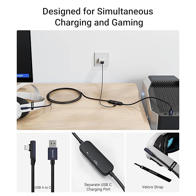 商品名:Syntech リンクケーブル 5M 充電付き、Meta Quest 3S/Quest 3/Quest2/Pico 4 に対応、別の充電ポート付き VR リンクケーブル、USB 3.0 から Type C コード ライト PC/SteamVR 用-ブラック