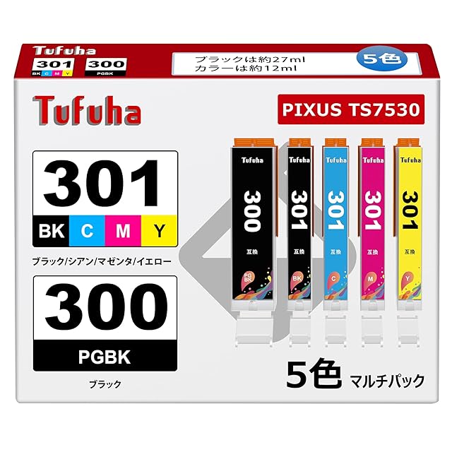 【製品容量】キャノン 用 インク 300 ブラックは約27ml、キャノン 用 インク 301 カラーは約12ml。
