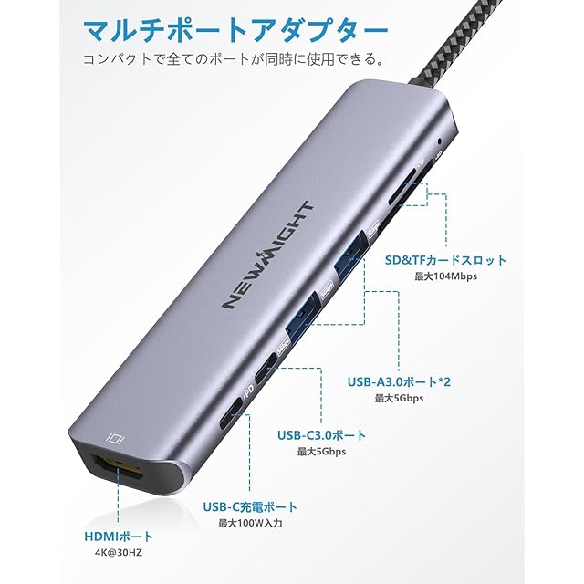 商品名:USB C ハブ 7-in-1アダプタ hdmi type-c ハブ 4K@30HZ HDMI usbハブ type-c×2ポートUSB-A 3.0×2ポート 5Gbps高速データ転送 PD 100W 急速充電ポート SD/TFカードスロット usb c hdmi Macbook pro/Airなど対応(USBハブ7-in-1type-c *2ポート)