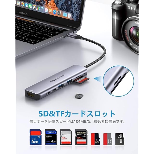 【スリム&多数のポートを同時に使用】:スリムで洗練されたUSB Cハブは、4K HDMI 端口*1、USB-C 充电端口*1、USB-C 端口(OTG)数据传输功能*1、USB-A 3.0 端口*2、SD 卡插槽*1、TF 读卡器*1、をを備えた7ポートマルチポートアダプターで瞬時に拡張し、ラップトップ、タブレットなどのUSB-Cデバイスの接続を改善します。