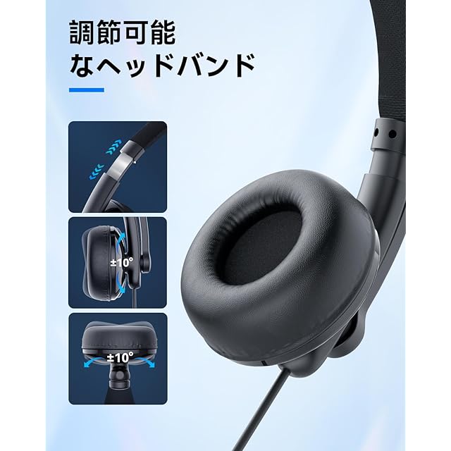 商品名:EMEET HS50 ヘッドセット ノイズキャンセリング マイク付き 270度回転 USB接続 USB-A/USB-C対応 軽量 手元コントローラー ミュート機能付き 音量調節 スライダー調整 オンイヤーヘッドセット PC用ヘッドセット Web会議/テレワーク/ゲーム/オンライン通話/在宅勤務 日本語説明書 メーカー2年付き