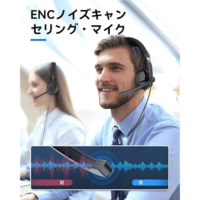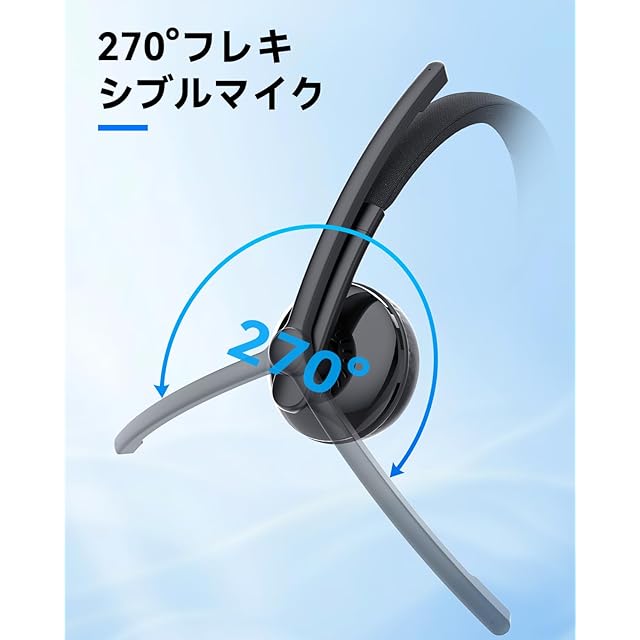 【ノイズキャンセリングマイク】 270°回転する単一指向性ブームマイクを搭載し、周囲の雑音を最小限に抑え、クリアで明瞭な通話が実現させ、仕事の効率をアップさせます。また、お好みに合わせて左右の耳に装着できます。