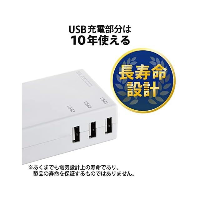 USB充電部に10年使える長寿命設計を実現しています。※あくまでも電気設計上の寿命であり、製品の寿命をするものではありません。