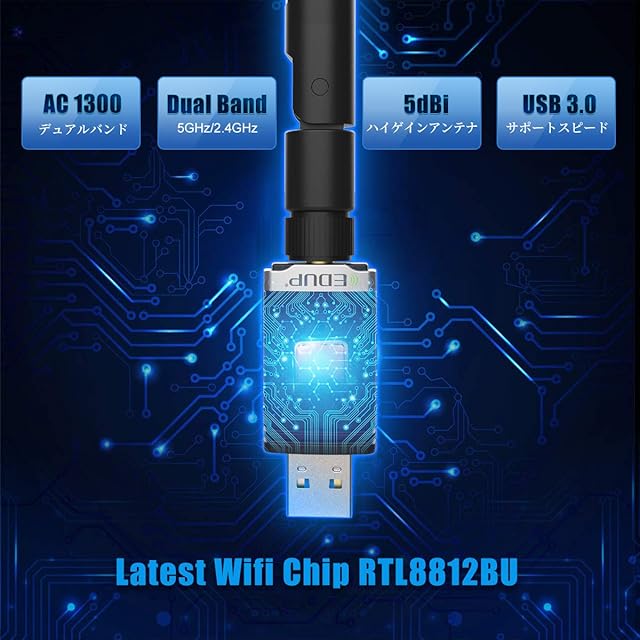 EDUP WiFi 無線LAN 子機 1300Mbps USB3.0 WIFIアダプター デュアルバンド 5G/2.4G 802.11 AC 高速通信5dBi 360°回転アンテナ Windows10/8.1/8/7/ XP/Vista/Mac OS X 対応 PC/Desktop/Laptop