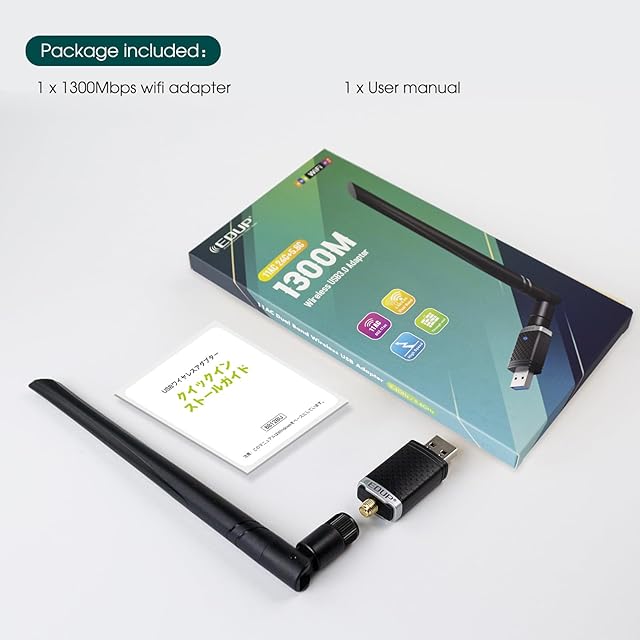 [ USB 3.0ポート ] -- USB 3.0はUSB 2.0より10倍速くて、最高のスループット性能とWi-Fiアダプタ用のより安定したインターネット接続を提供します。EDUP 無線LAN子機は最大5GHz帯(867Mbps)+2.4 GHz帯(400Mbps)の超高速接続、最高1300Mbpsで通信可能になります