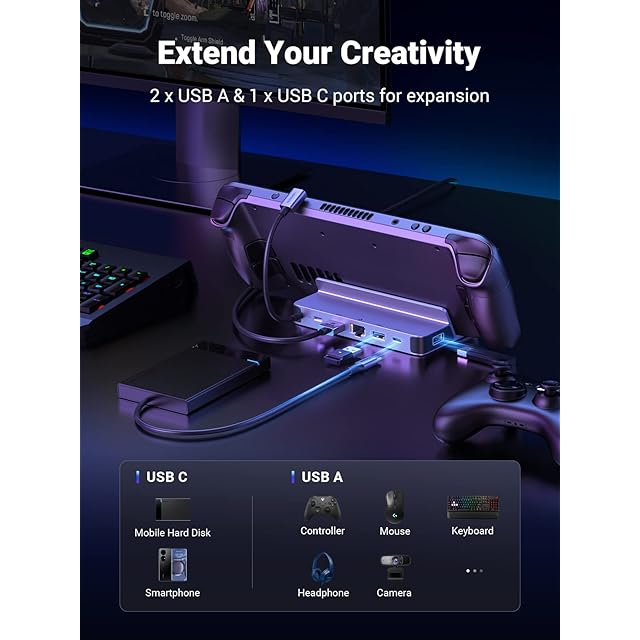 【幅広い互換性】: このハンドヘルド ゲーム ドックは、Steam Deck、ROG Ally、LEGION Go などのゲーム コンソールと広く互換性があります。 また、iPad Pro/Air、Surface Pro8、Go 3などのさまざまなUSB-Cデバイスと幅広く互換性があり、さまざまなニーズに対応します。