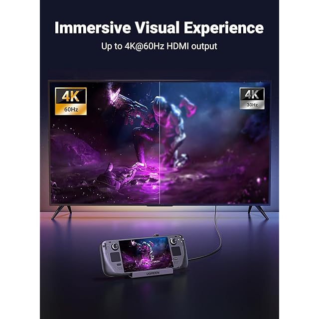 【4K@60Hzの映像出力】HDMIポートは最大4K@60Hzの解像度をサポートし、2560*1440@60Hz、1920*1080@60Hzにも対応、より低い解像度との互換性があります。HDMIポートを通してSteam deckのゲーム画面をテレビやモニターに映し出すことができ、大画面でより良い映像のゲーム体験が楽しめます。 モニター画面へのHDMI接続は、基本的にラグなし。