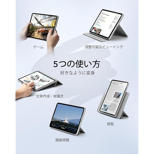 【複数使用モード】:縦向きと横向きの調整が可能な6つのユニークな使用モードがあり、iPadを好きなように変身させることができます