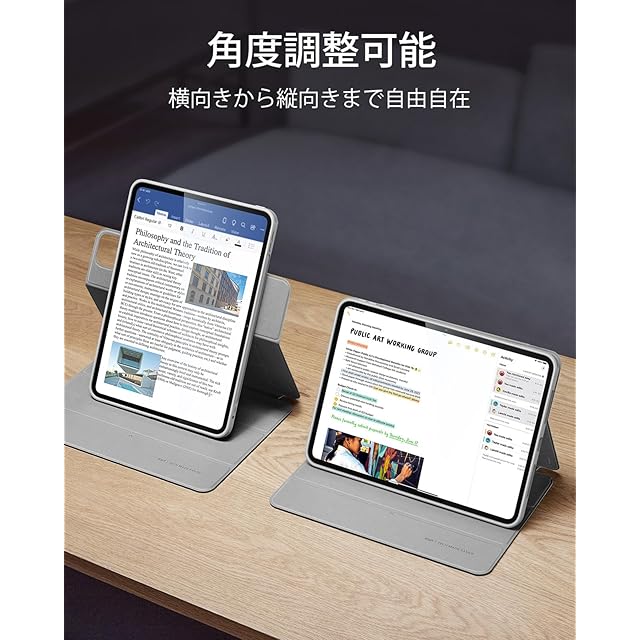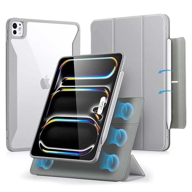 ESR iPad Pro 13インチ ケース M4 2024専用 Pencilホルダー付き 取り外し可能マグネットカバー 縦置き/横置きスタンド Pencil Pro/USB-C完全対応 Rebound 360シリーズ グレー