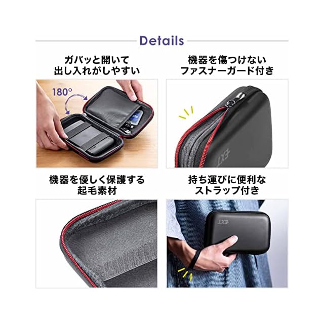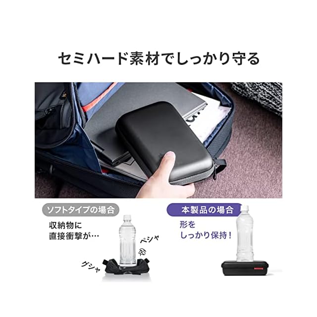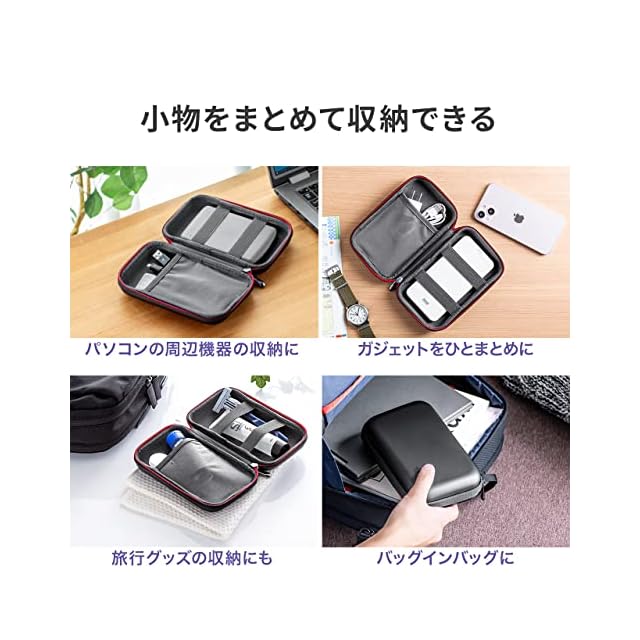 商品名:サンワダイレクト トラベルポーチ ガジェットポーチ セミハード 旅行 出張 便利グッズ マウス ケーブル モバイルバッテリー 収納ポーチ SSサイズ ブラック 200-BAGIN027BK
