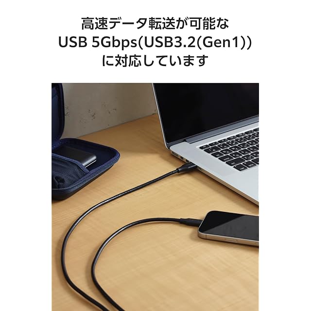 スマートフォンやタブレットの充電やデータ転送に。USB 5Gbps(USB3.2(Gen1))に対応。最大15W出力のUSB-A - USB Type-C(TM)ケーブルです。
