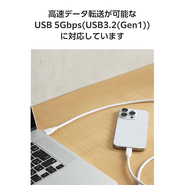 スマートフォンやタブレットの充電やデータ転送に。USB 5Gbps(USB3.2(Gen1))に対応。最大15W出力のUSB-A - USB Type-C(TM)ケーブルです。