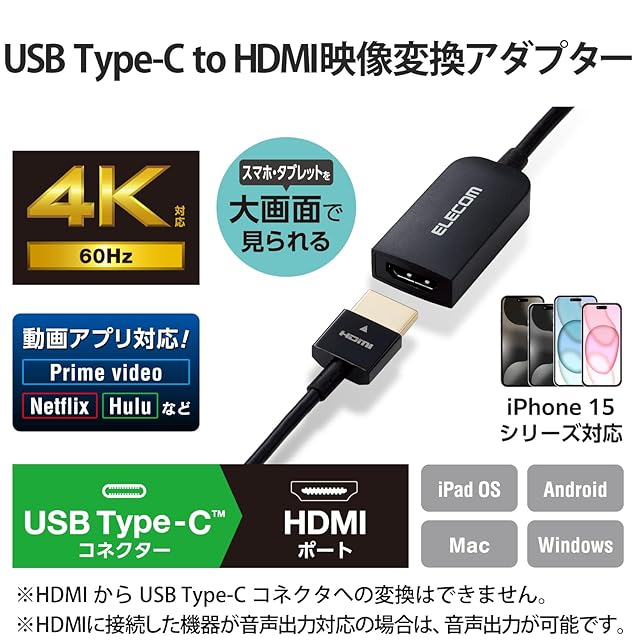 エレコム USB-C HDMI 変換 ( USB C to HDMI 60Hz 変換アダプタ ) ミラーリング対応 0.15m ブラック 【iPhone 16/16 Pro/16 Pro Max/16 Plus 対応検証済】 MPA-CHDMIQBK | つむぎ屋