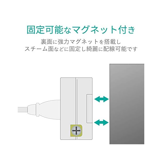 EU RoHS指令に準拠(10物質)した環境にやさしい、3P式4個口のマグネット付き抜け止めタップ。電源コードには、丈夫で安全性を向上させた二重被ふくケーブルを使用。