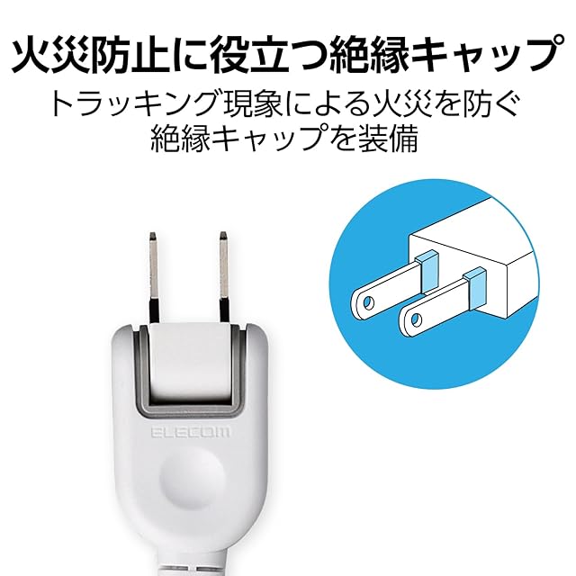 トラッキング現象による火災の防止に役立つ絶縁キャップ付きのコンセントプラグを採用しています。