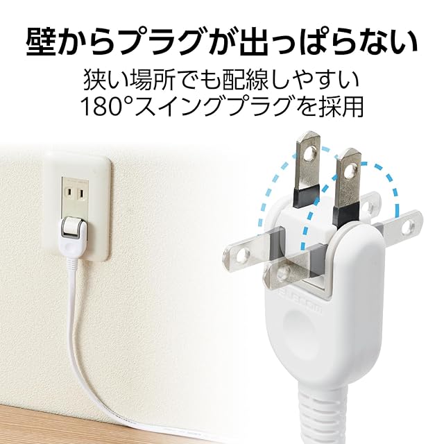 狭い場所でも配線しやすい180°スイングプラグを採用しています。