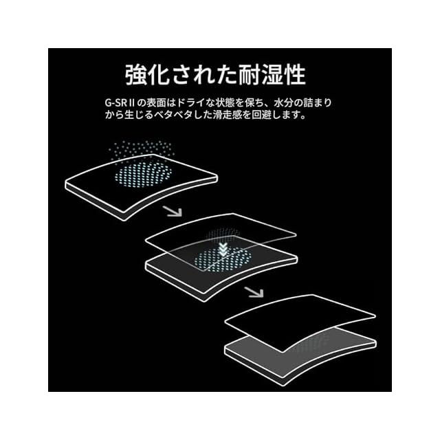 耐湿性が高く長時間のプレイでも快適に使用でき、常に滑らかな操作感を保ちます。底面に滑り止めが追加されたことによりマウスを素早く動かしてもズレにくいよう改良されています。