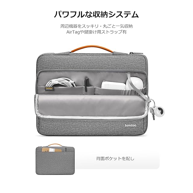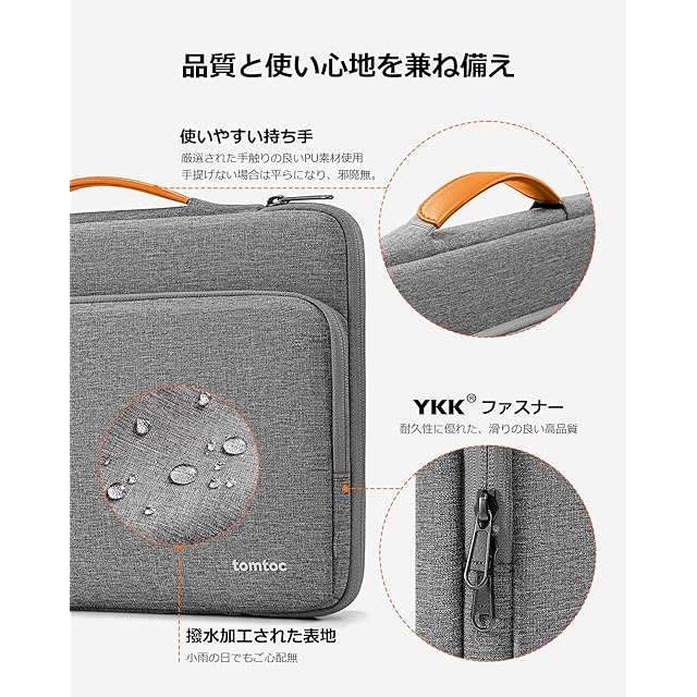 [tomtoc] 360°保護 11.6-13.8インチ パソコンケース 13インチ MacBook Air M4-M1 2025-2018 / 13 MacBook Pro M2 M1 2023-2016 / 13 iPad Pro iPad Air対応 ノートパソコンケース PCバッグ ブリーフケース 撥水加工 耐衝撃 通勤 通学 就活 アッシュグレー | つむぎ屋