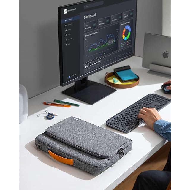 【ミニマルで使いやすいデザイン】 このパソコンキャリングバッグはミニマルな見た目がクラシックやプロな雰囲気が溢れます。裏地は洗練されてライン模様に仕上げ、パッド入りで耐衝撃にも役立ちます。側面短辺の開口はファスナー閉め忘れてからノートPCの落ちてしまう恐れ無で安全性アップ。