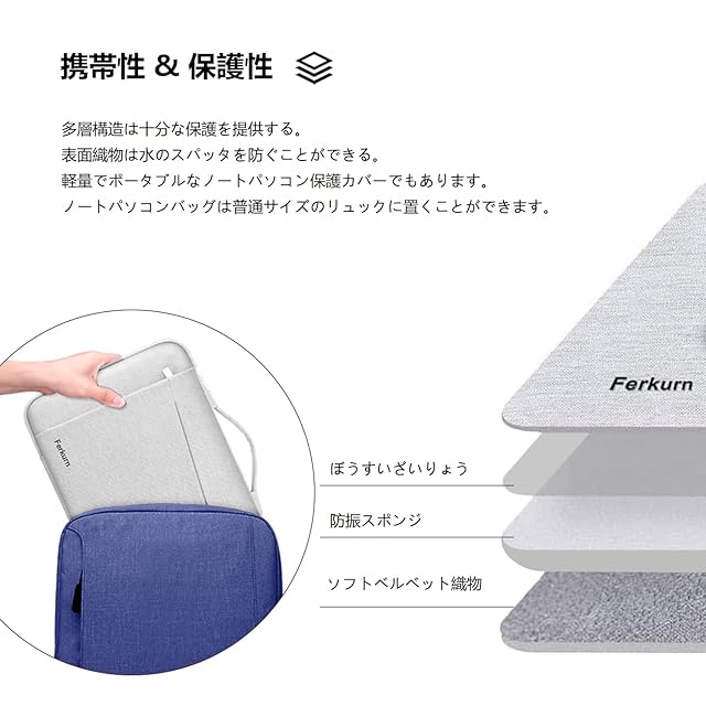 Ferkurn パソコン ケース 11.6 12 12.5 インチ PCケース 衝撃吸収 パソコンバッグ タブレット ケース 撥水加工 手提げカバン パソコンケース 持ち歩き 通勤 ビジネス ラップトップ クロームブック 12.3-13" Surface Pro 9 8 7 X/Surface laptop go 12.4/iPad Pro 12.9/Dynabook C1/NEC Chromebook y3 y2/dell chromebook 3100/Macbook 11 Air 12/Lenovo | つむぎ屋