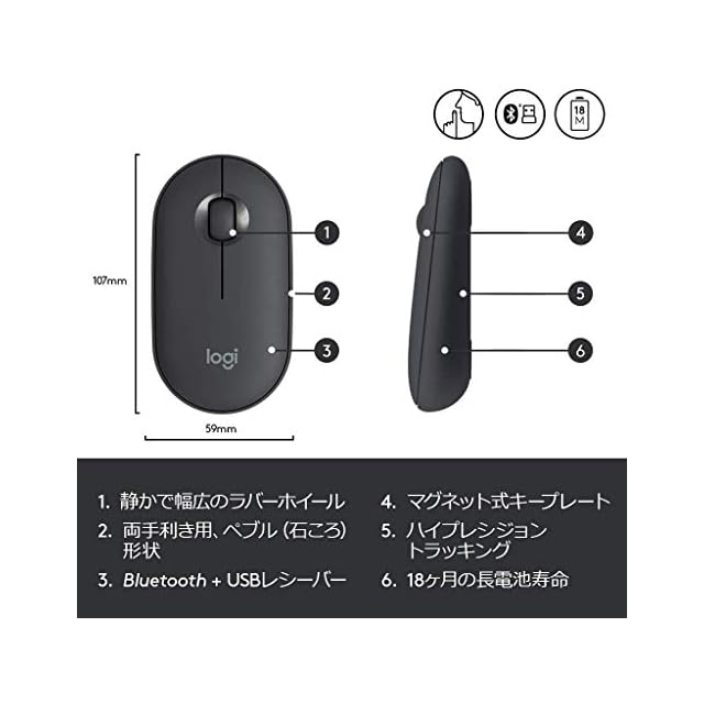 ロジクール ワイヤレスマウス 無線 マウス Pebble M350GR 薄型 静音 グラファイト ワイヤレス windows mac Chrome Android Surface iPad OS M350 国内正規品 | つむぎ屋