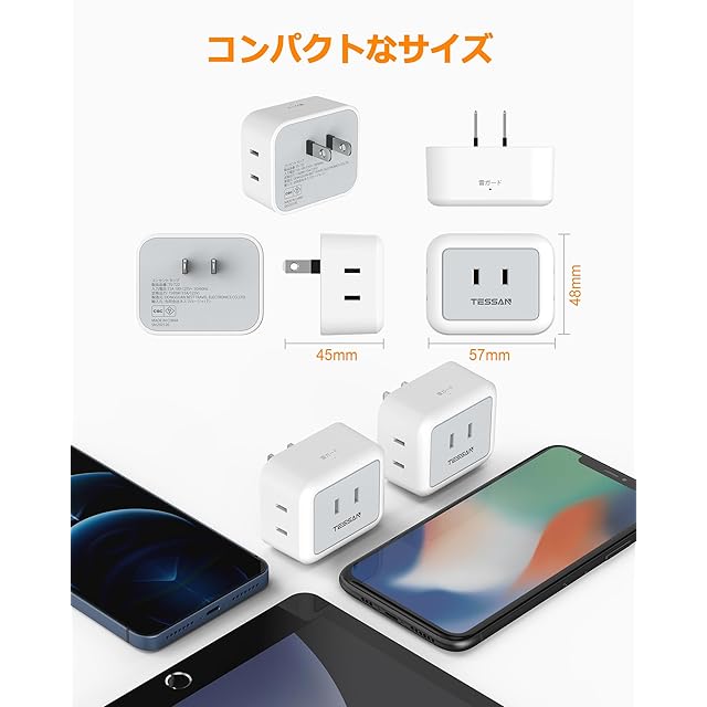 【小型軽量の壁タップ】この一つのコーナータップのサイズは48*57*45mmで、重量は100 gで、コンパクトで軽くて持ち運びに便利です。また、小型・軽量なので、自宅に狭いスペースでのご使用に最適です。なお、外出や出張などの時も適用できます。